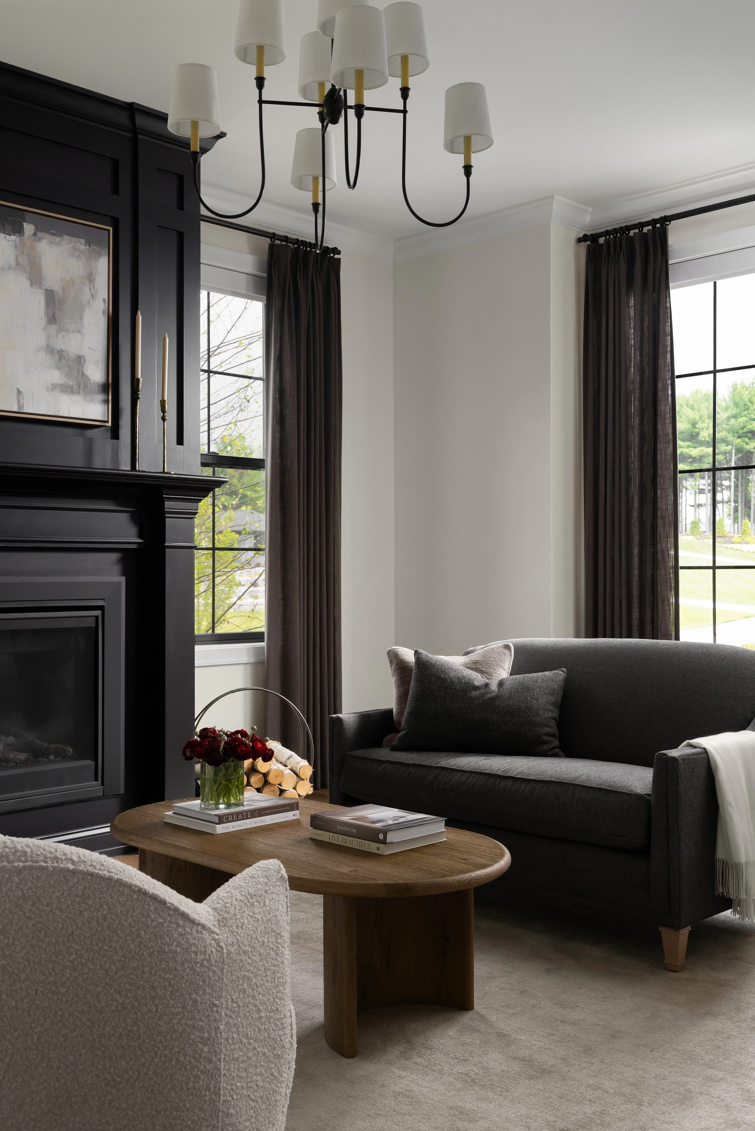 Brighton, MIThis ground-up new build was fully furnished and styled to reflect a refined yet inviting aesthetic. Our team provided complete furnishings and lighting design, layering custom details throughout the home.