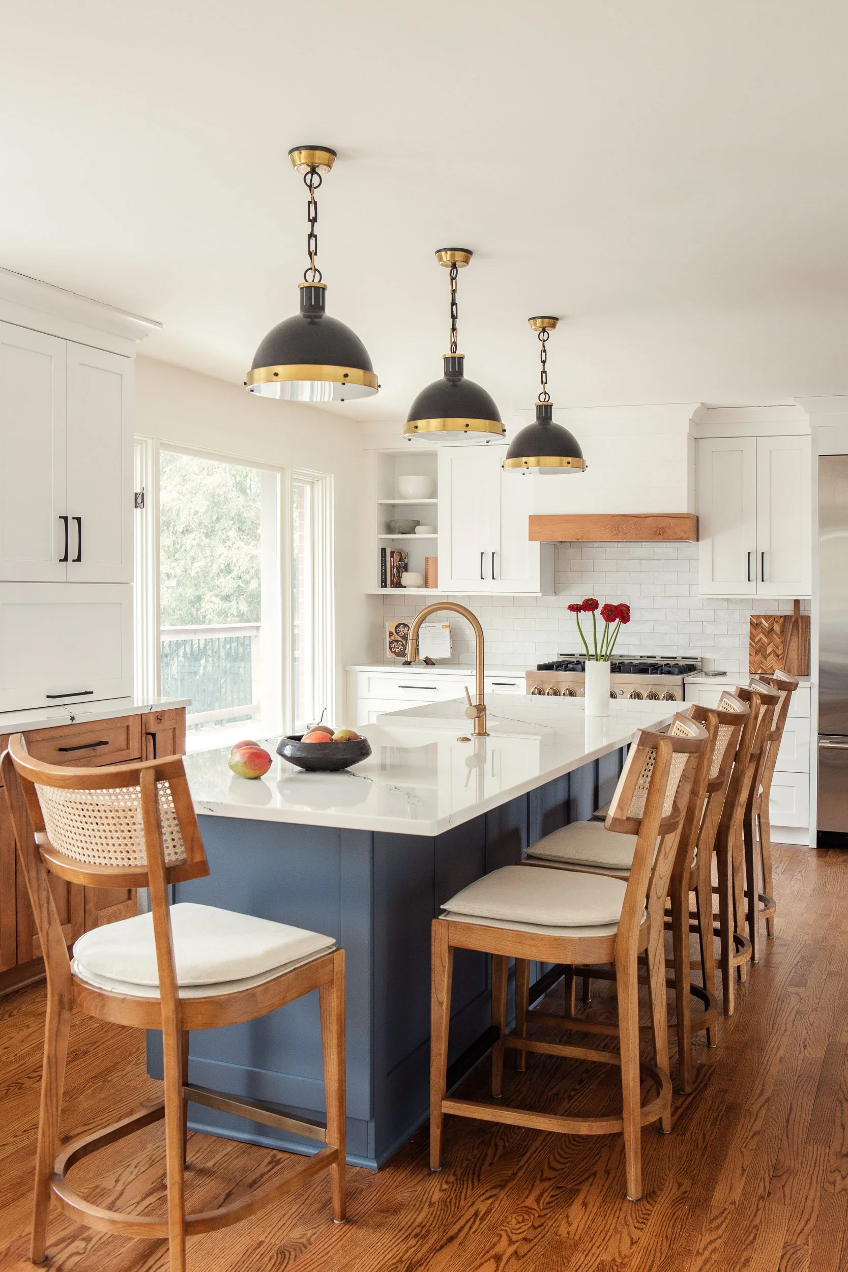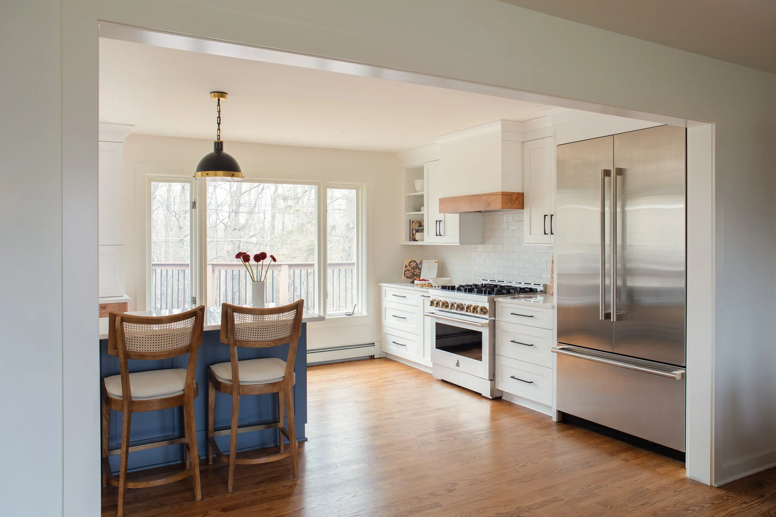 This stunning kitchen remodel involved a massive transformation, we expanded the kitchen's footprint by removing a wall and combining the previous kitchen and dining room. The result is a spacious, open-concept kitchen that is both visually stunning and highly functional. Sleek cabinetry, high-quality materials, and top-of-the-line appliances create a welcoming atmosphere and stylish aesthetic.